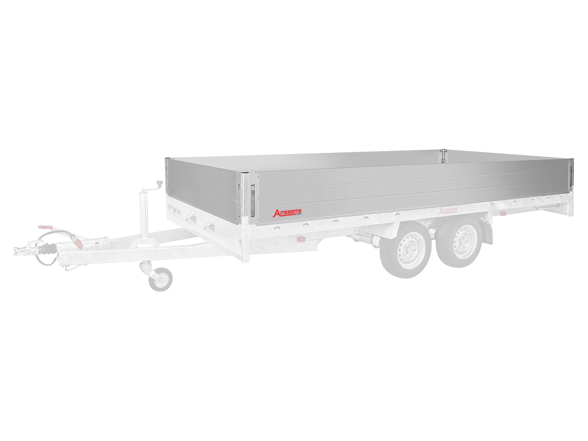Kompletter Satz: Alu Aufsatzbordwände, Höhe 36 cm, mit Spannverschlüssen und Rungen für Anssems MSX 405x200x36