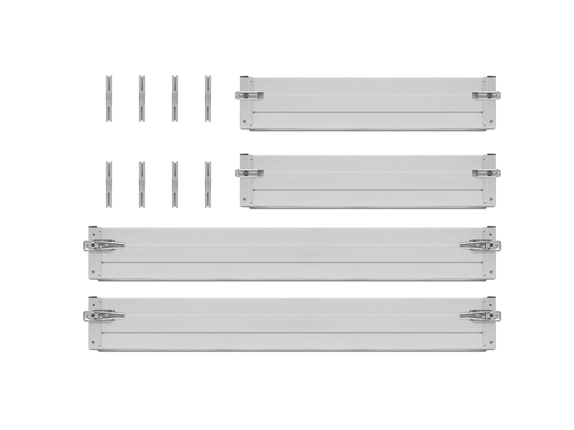 Kompletter Satz von: Alu Aufsatzbordwände, Höhe 30 cm, mit Spannverschlüssen und Rungen für Anssems PLT 231×132 Hochlader.