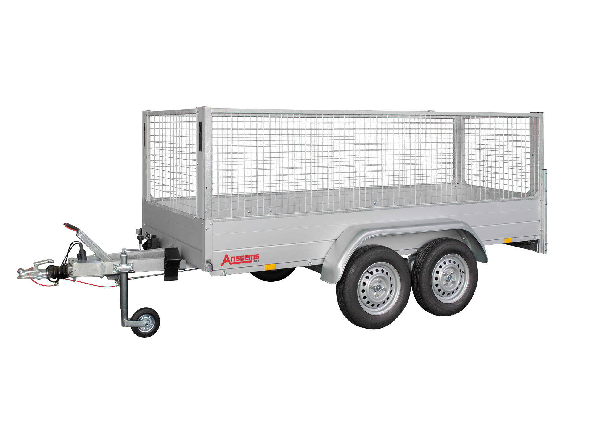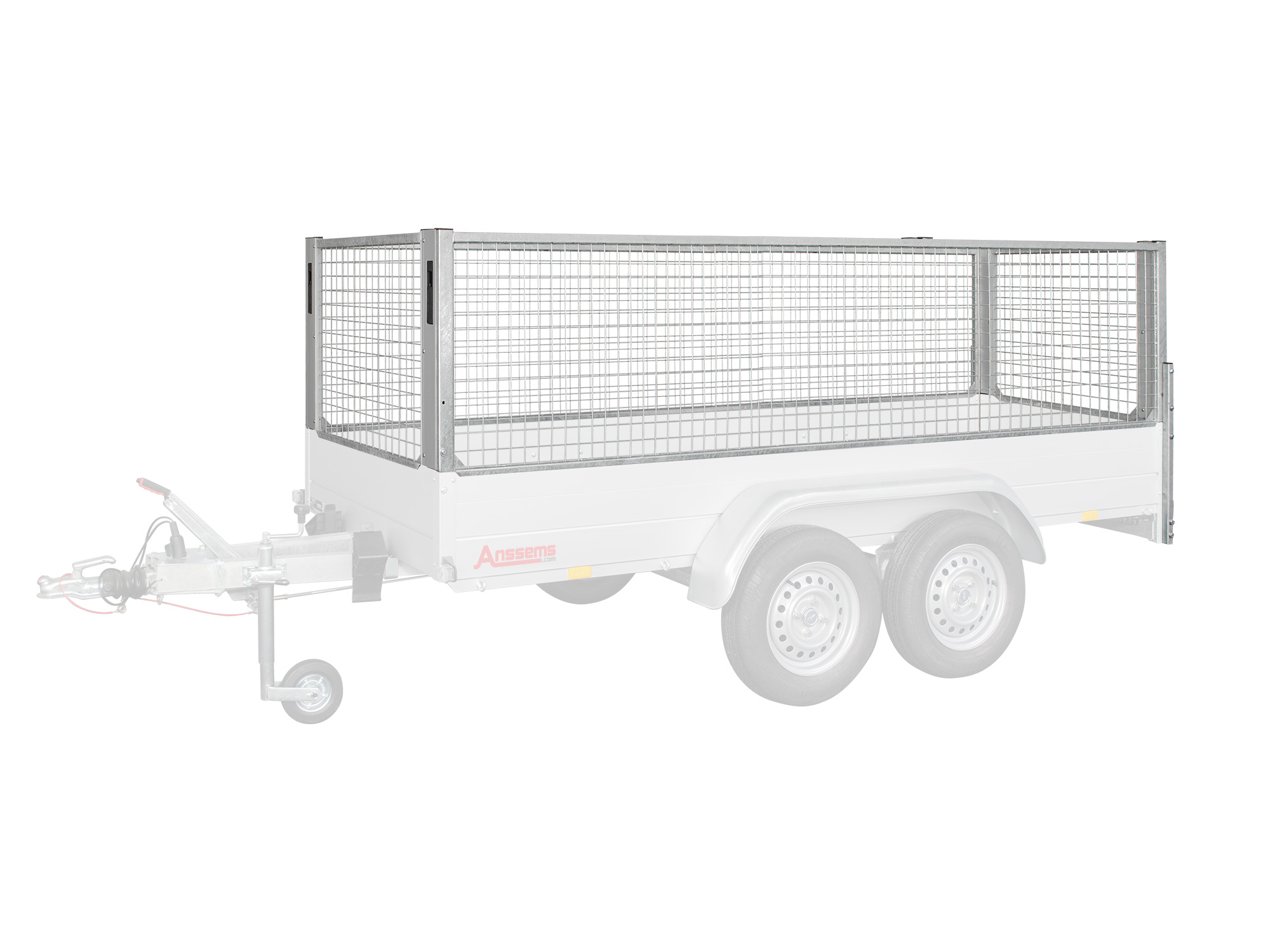 Anssems Kompletter Satz: Gitteraufsätze 301x151x70 cm (Verzinkter Stahl) mit Spannverschlüssen und Rungen für GT-O 251×126 Tieflader. Schützt Ihre Ladung. Kann oben mit einem Ladungsnetz abgedeckt werden. Inkl. Befestigungsmaterial.
