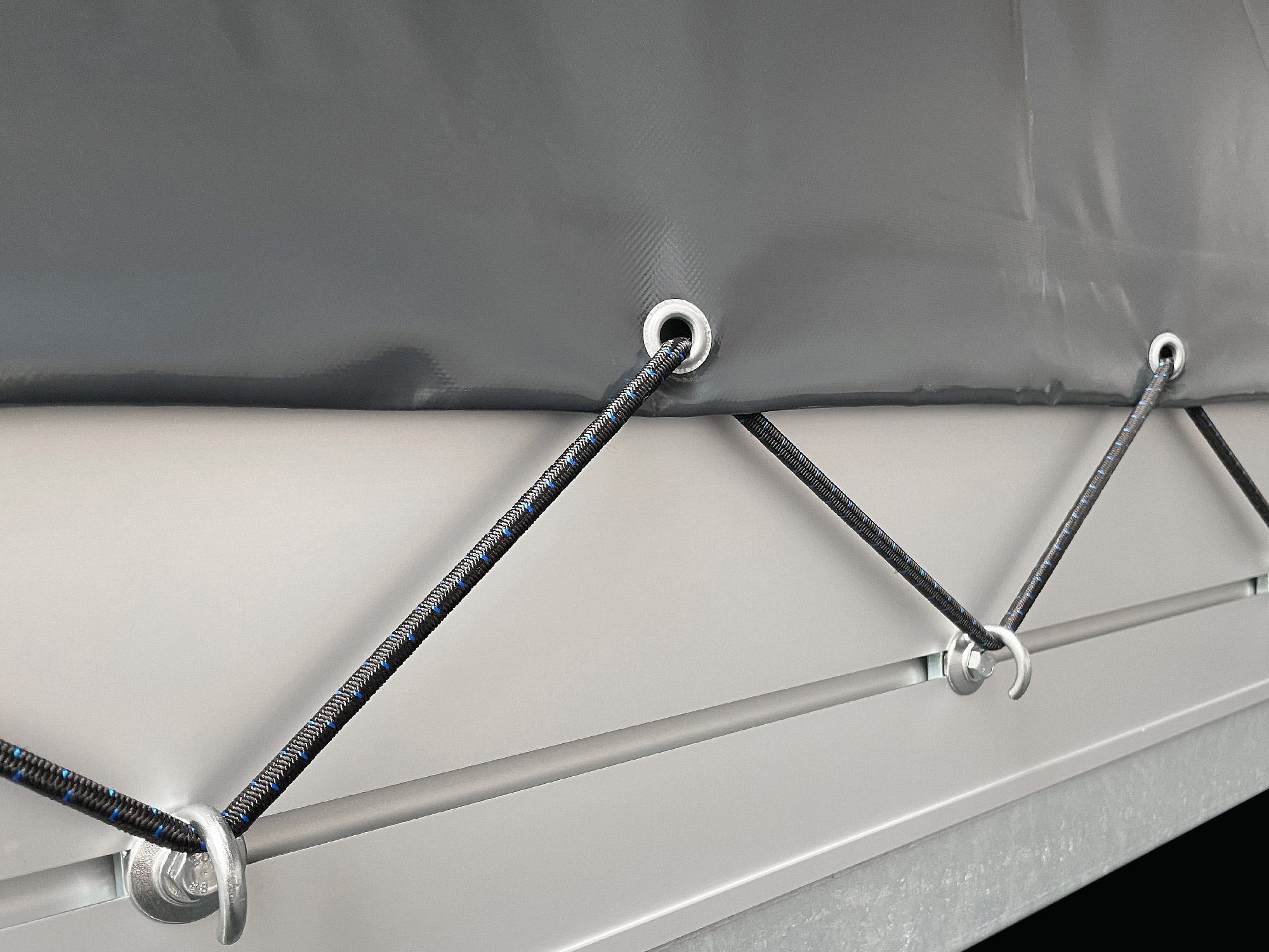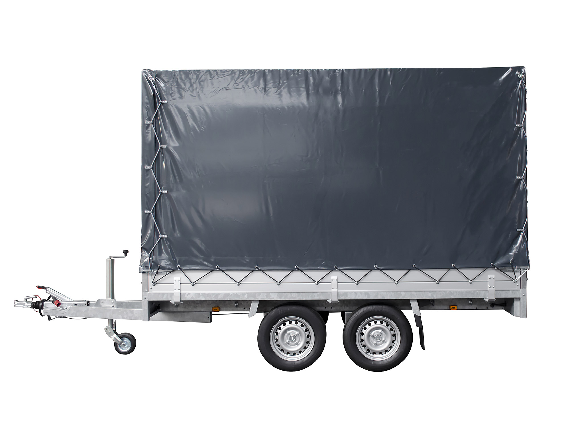 Hochplane mit Gestell für PSX 305×153 (Farbe: anthrazit). Die dazugehörige Plane wird komplett mit Expanderseil und Netzhaken Satz geliefert. Schutz vor Sonne, Regen und Wind. Hochwertige Metallgestell. Strapazierfähige, wetterfeste PVC-Plane. Hohe Beständigkeit gegen Chemikalien und Fette. Ösen gegen Rost behandelt. Verstärkte Kanten und Ecken. Leicht zu öffnen.