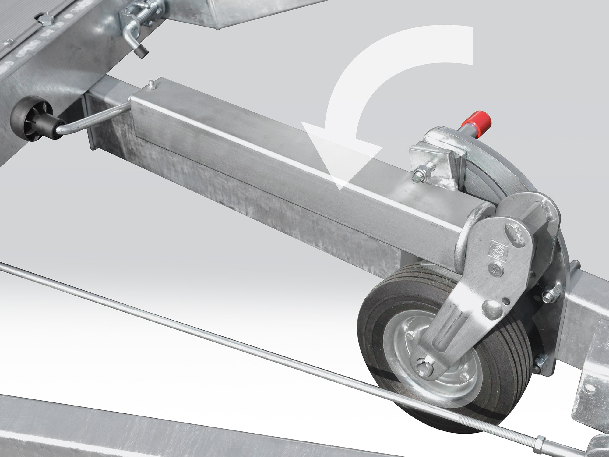 Stützrad Montagesatz für AMT Fahrzeugtransporter und CARAX Multitransporter. Sie Verwenden das vorhandene AMT oder Carax Stützrad in Kombination mit dem Montagesatz.