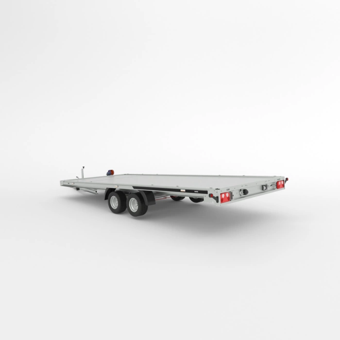 Moderner Fahrzeuganhänger aus Aluminium. Höhere Ladekapazität durch geringeres Gewicht, optimaler Auffahrwinkel, ausgeklügeltes Design für Sicherheit und komfortables, stabiles Fahren. Drei Arten von Transportflächen stehen zur Auswahl.