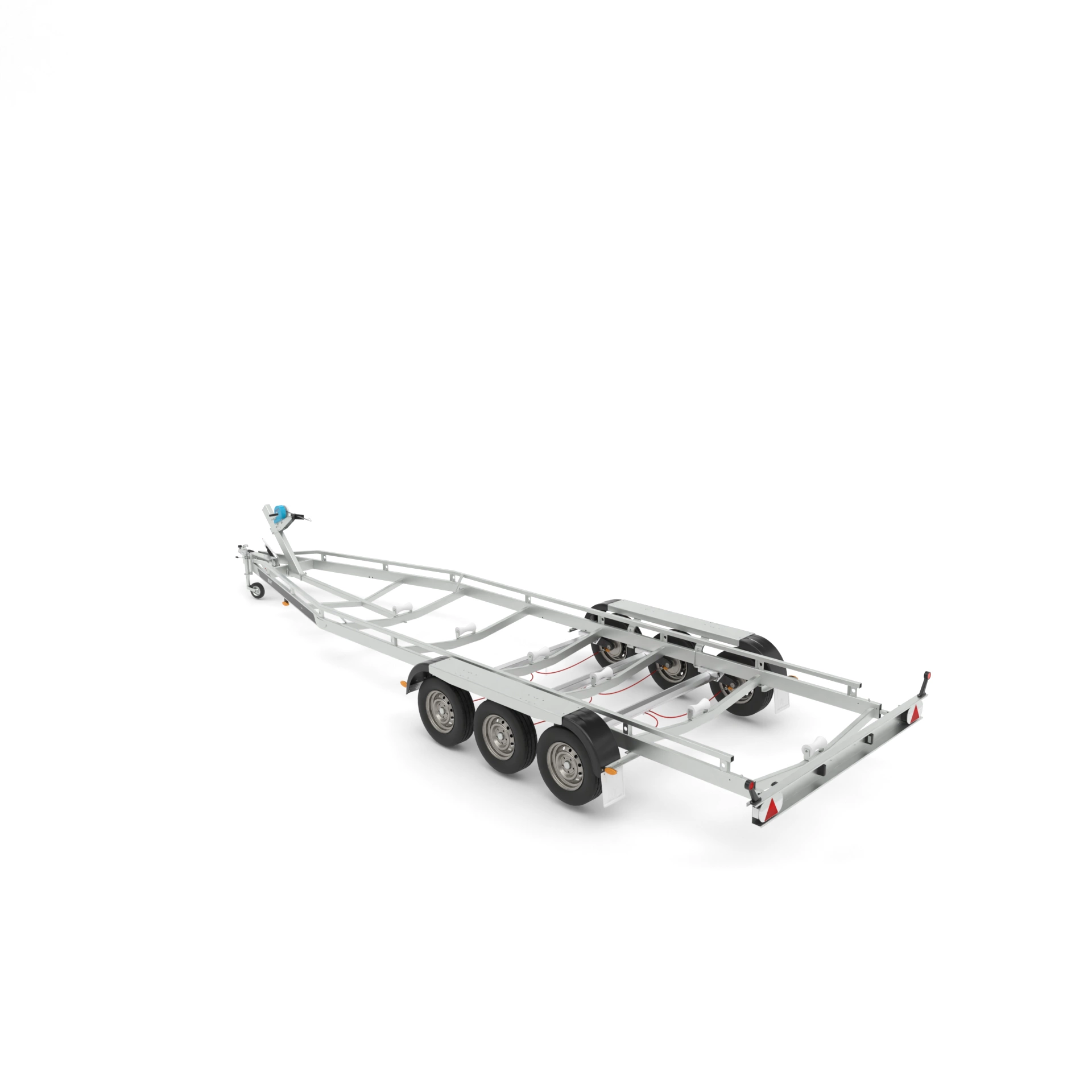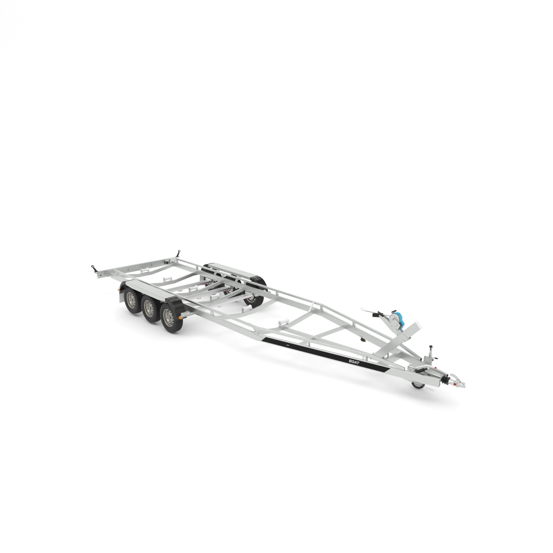 Bootsanhänger aus verstärkten Profilen. Achse mit wasserdichten Lagern in den Naben, um die Zuverlässigkeit beim Starten zu gewährleisten. Anhänger, die durch Feuerverzinkung geschützt sind, für Langlebigkeit und ein unverändertes Aussehen. Der abnehmbare Heckbalken ist nicht nur leicht zu entfernen, sondern dient auch dazu, die Länge des Anhängers anzupassen, so dass er bei Bedarf ein noch größeres Boot aufnehmen kann. Stufenlos verstellbare Stützen, verstellbare Achsposition zur Einstellung der richtigen Last auf der Anhängevorrichtung, verstellbare Begrenzungsleuchten und viele weitere Optionen. Maximale Tiefeinladung und solide Halterungen für Boote geben Ihnen Sicherheit und Komfort beim Transport Ihres Bootes.