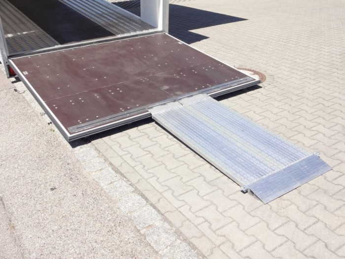Die Plattform wird mittels einer Hydraulikpumpe gekippt Aluminiumblech an der Seiten - Wände -Sandwichaufbau 40mm, glatt laminiert, Farbe RAL9016