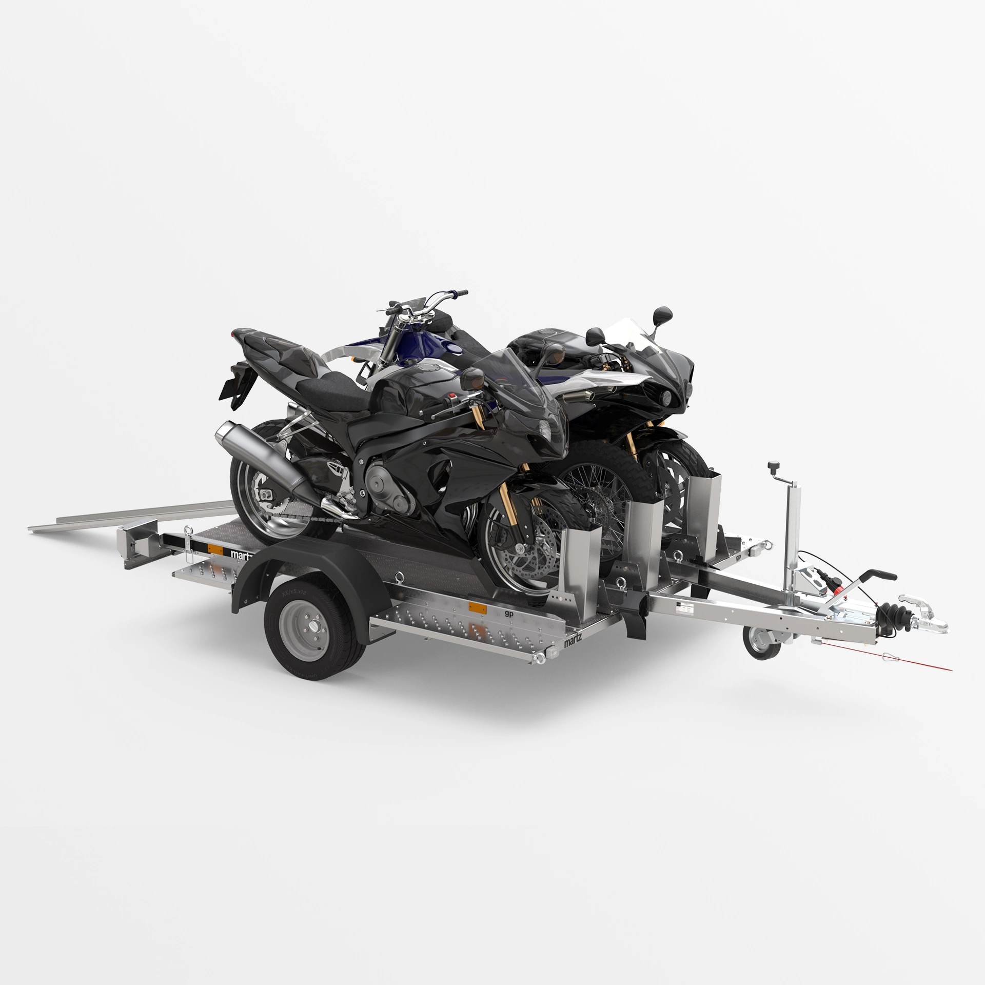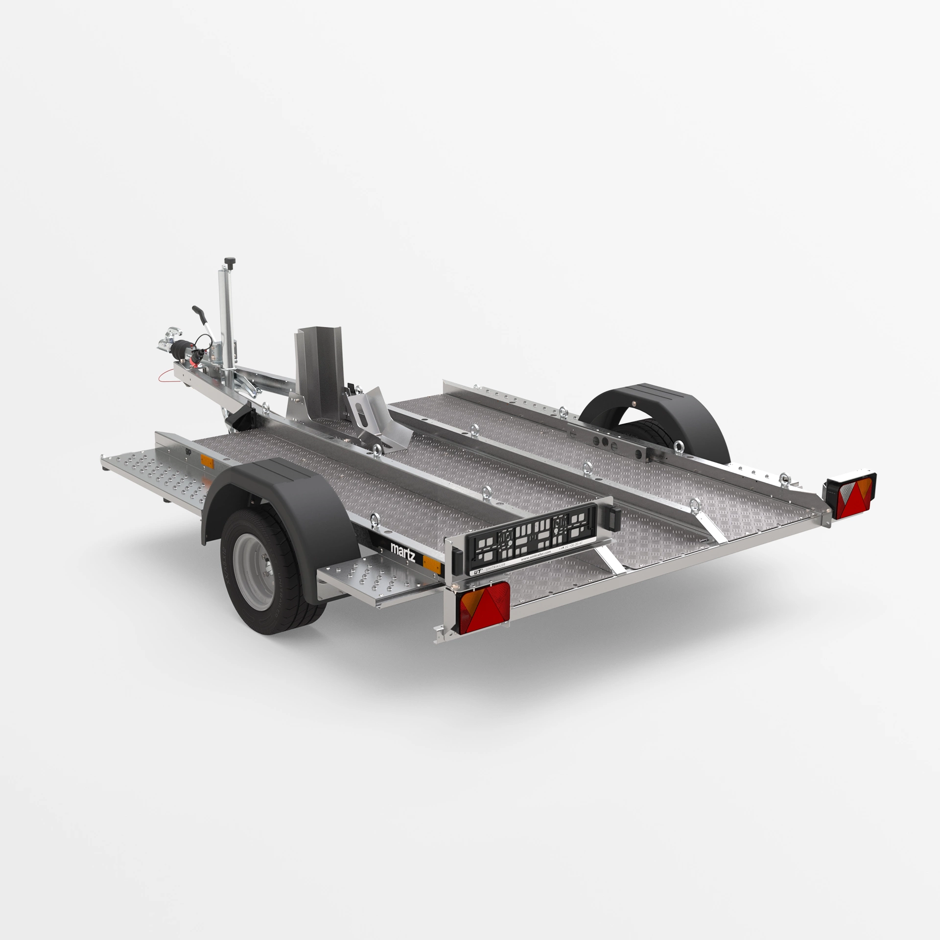 Dieser hochwertiger ungebremste hydraulische Absenkanhänger der Qualitätsmarke geeignet für 1-bis-3 Motorräder und bringt Sie sicher ans Ziel – auf die Piste, in die Werkstatt oder in den Urlaub.