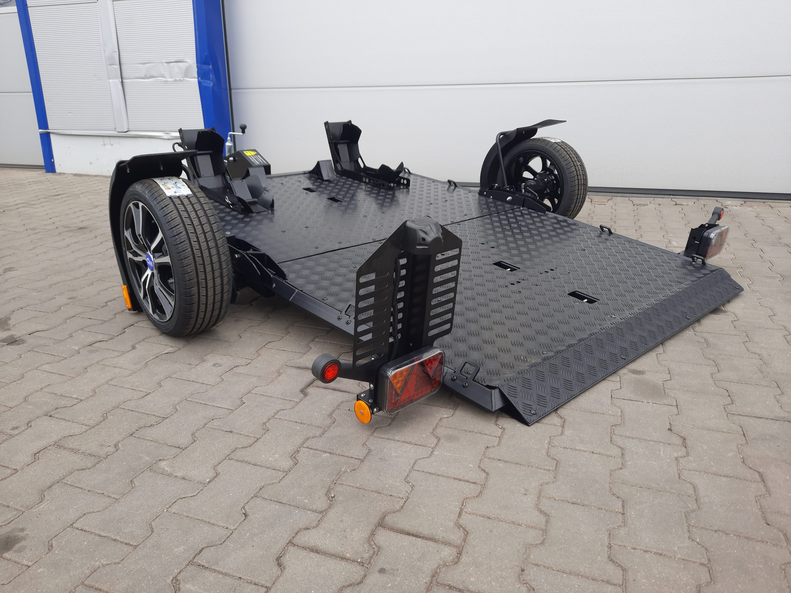 Die Chassisstruktur und die Deichsel sind aus einem geschlossenen Stahlprofil gefertigt. Der Rahmen des Anhängers wird zusätzlich durch quer geschweißte Halterungen verstärkt. Dies garantiert die Stabilität und Zuverlässigkeit der gesamten Struktur.