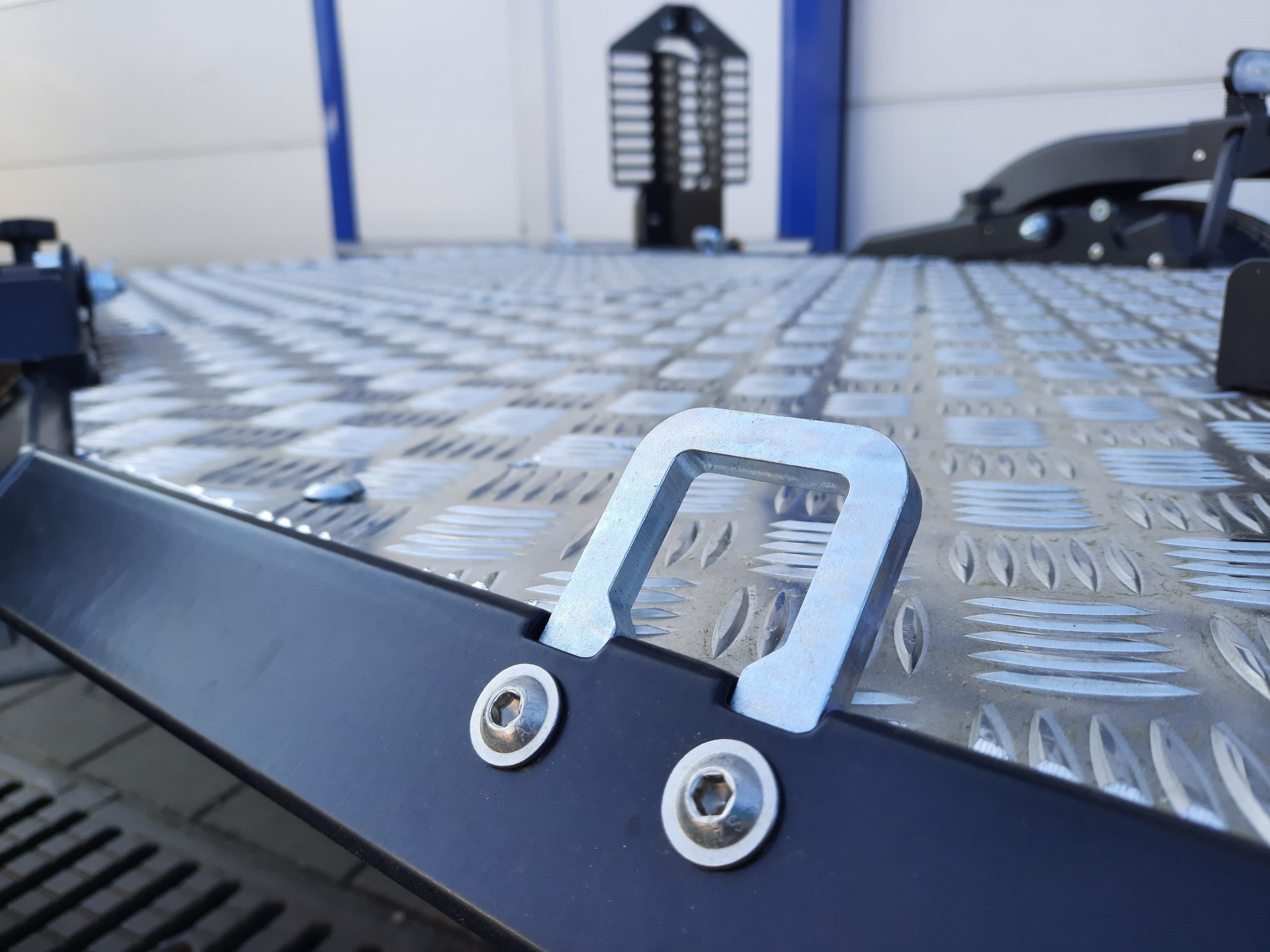 Der Rahmen des Anhängers wurde durch Feuerverzinkung gegen Korrosion geschützt und dadurch gegen mechanische Beschädigungen verstärkt. Zusätzlich ist es in schwarzer Farbe pulverbeschichtet.