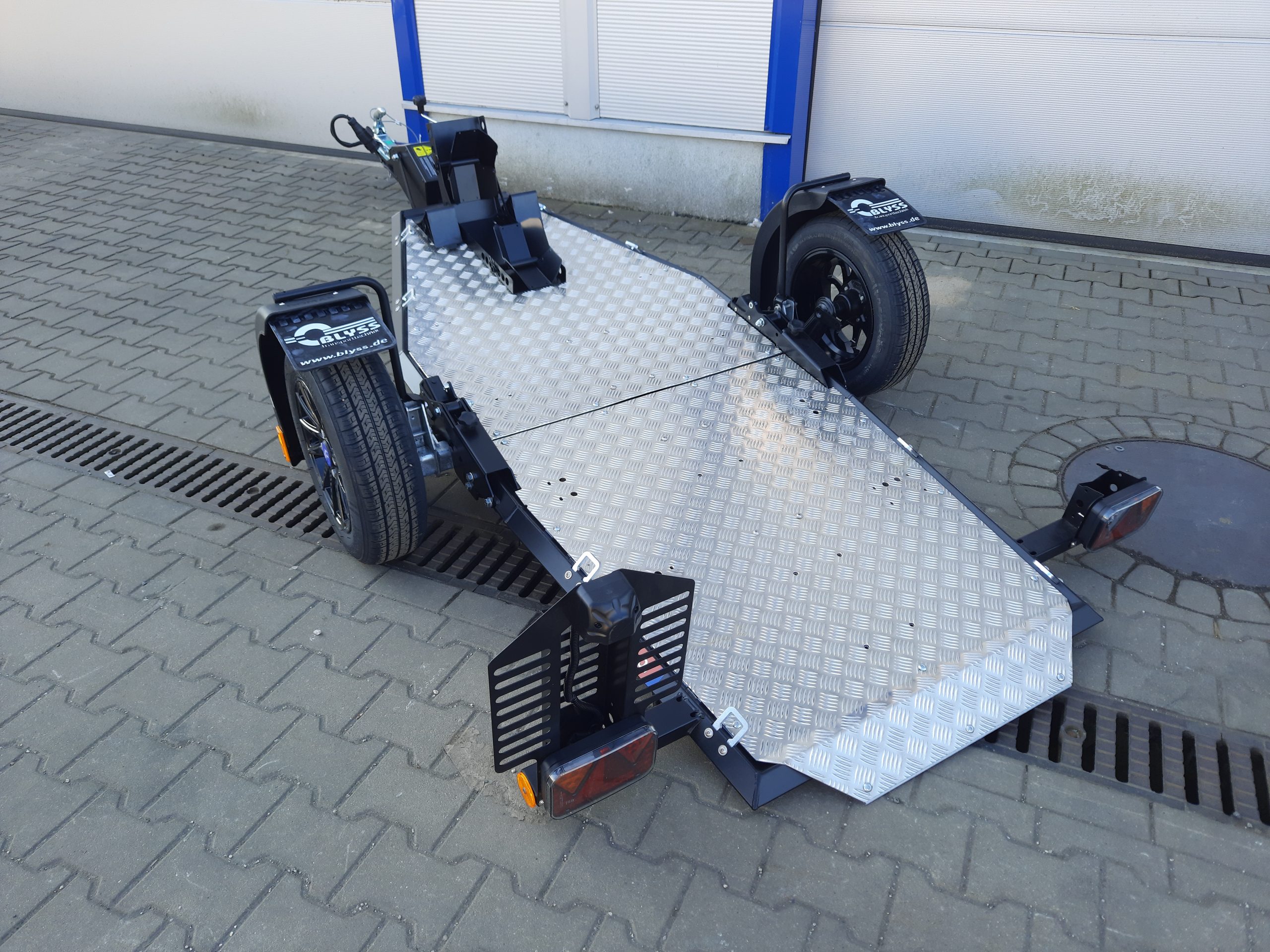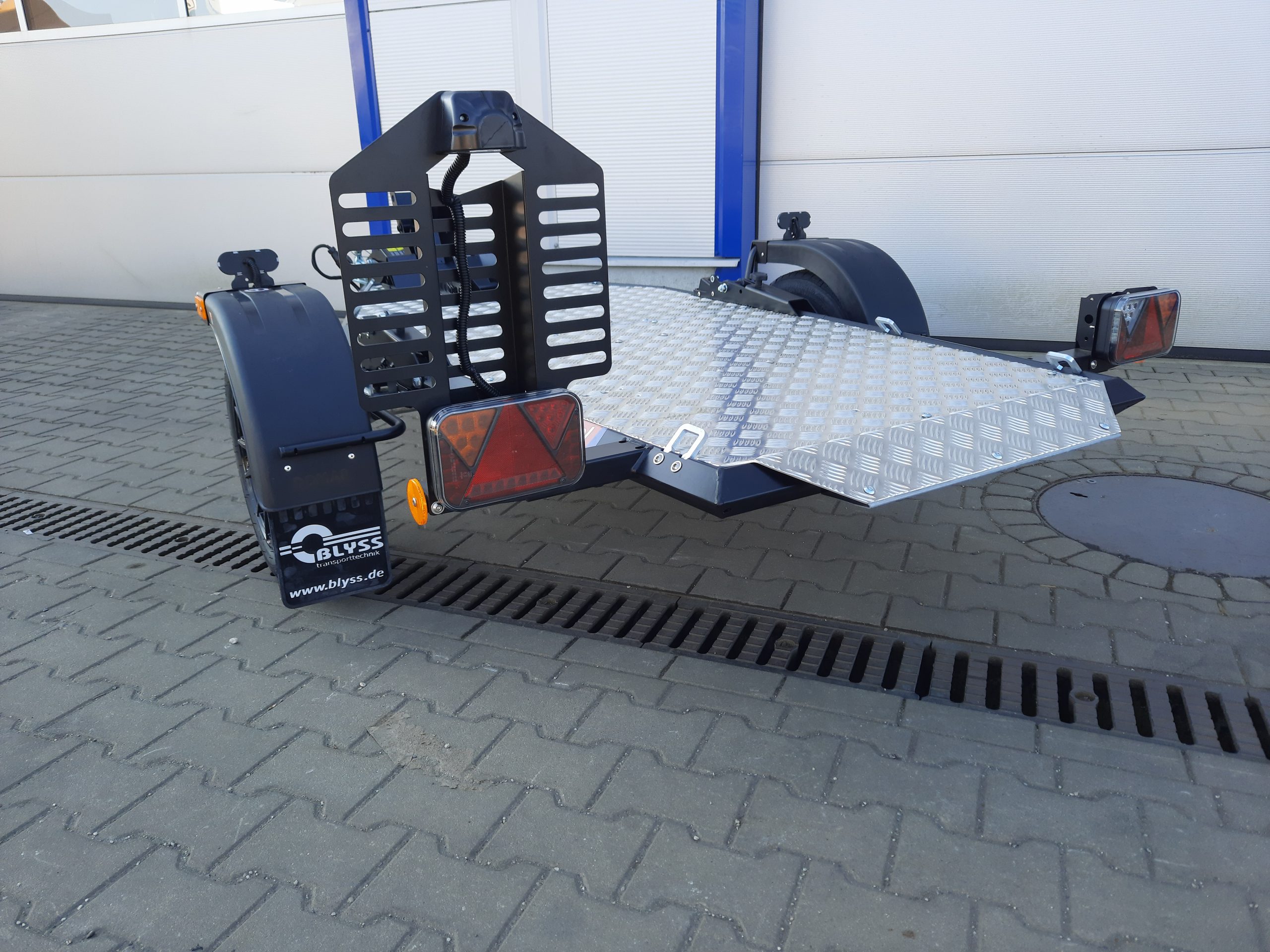 Motorradanhänger 750kg absenkbar und zum Zusammenklappen ungebremst – 100 KM/H