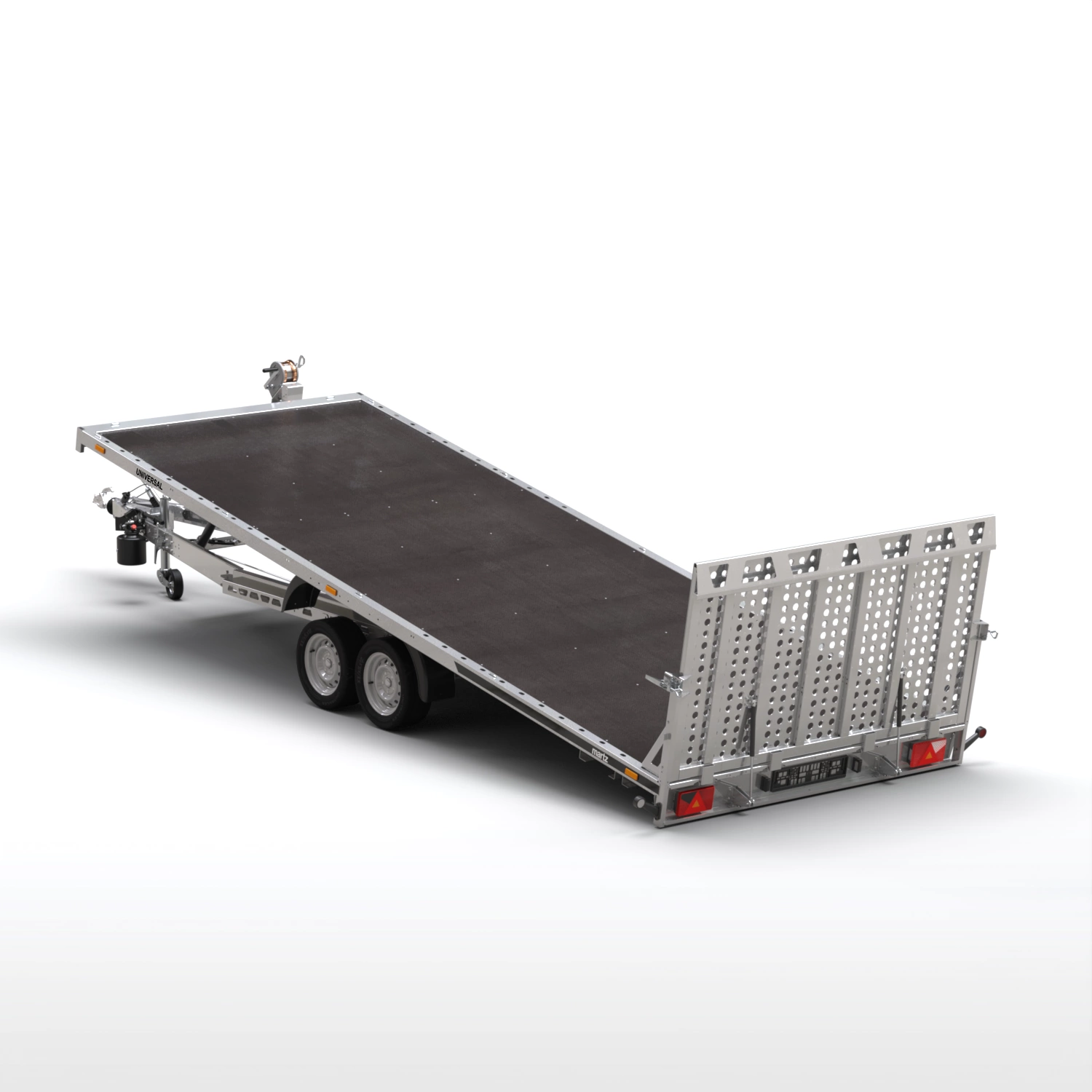 Die Serie universeller Autotransporter mit kippbarer Konstruktion, niedrigem Anfahrwinkel und einer großen Auswahl an zusätzlichem Zubehör. Kippen der Ladefläche erfolgt über ein komfortables Hydrauliksystem. Wir geben die Möglichkeit, den Universal mit Aluminium-Bordwänden. Je nach gewählter Version hat der Anhänger R10C oder R13C Räder. Geschweißter, feuerverzinkter Rahmen. Die Transportfläche besteht aus rutschfestem wasserfestem Sperrholz. Nutzlast bis 2750 kg. Das maximale mögliche zulässige Gesamtgewicht beträgt 3500 kg.