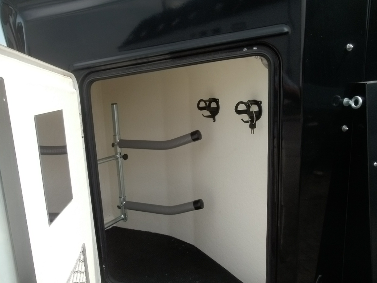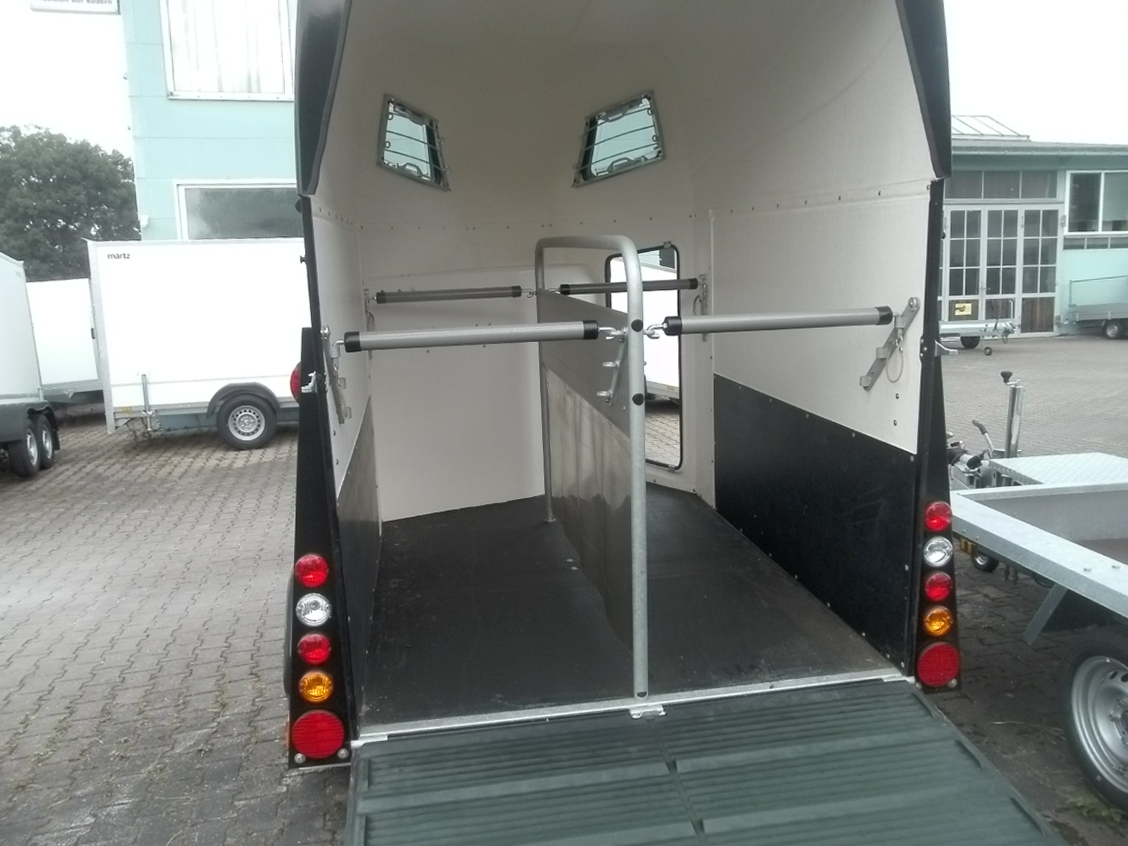 Der qualitativ hochwertige Pferdeanhänger ist ein komfortables und sicheres Produkt für Reiter und Pferd. Unser Pferdeanhänger besteht aus der neusten Polymer-Technik, die zu 100% holzfrei ist. Die unvergleichbare Formgebung sorgt für die beste Aerodynamik und minimiert dadurch Fahrgeräusche und Treibstoffverbrauch. Der extrem niedrige Einstieg über die große Heckklappe, die sinnvoll platzierte Innenbeleuchtung, sowie die einzigartige Boden- und Seitenwandoberfläche sorgen für einen stressfreien Pferdetransport. Zahlreiche, extrastarke Zug- und Haltebügel ermöglichen leichtes rangieren. Zu unserer großzügigen Serienausstattung gehören: SATTELKAMMER, schwenkbare und höhenverstellbare Brust- und Heckstangen, drehbare Trennung, Panikschloss, nicht- blendende Innenbeleuchtung, beidseitige Haubenfenster, Heckplane mit Aufrollautomatik, Außenreling zum Pferde anbinden, Antirutsch-und Sichttritt, Rangiergriffe und Automatikstützrad.